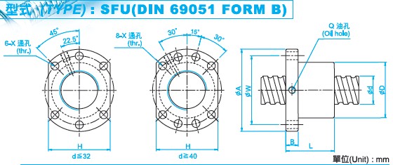 SFU滾珠螺桿(DIN 69051 FROM B) 單螺帽法蘭型