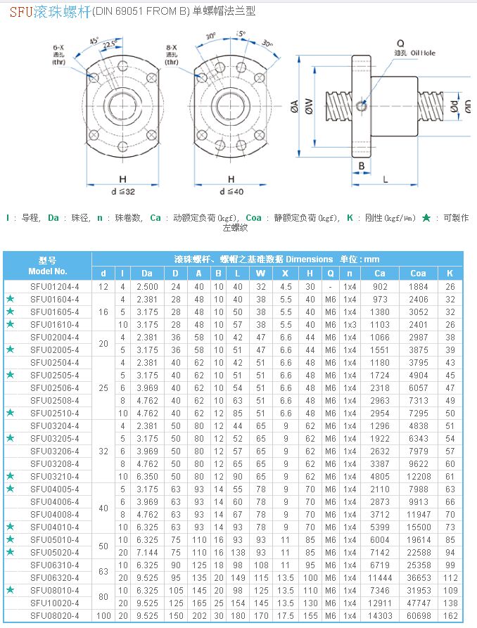 SFU系列:SFU01204-4 SFU01604-4 SFU01605-4 SFU01610-4 SFU02004-4 SFU02005-4 SFU02504-4 SFU02505-4 SFU02506-4 SFU02508-4 SFU02510-4 SFU03204-4 SFU03205-4 SFU03206-4 SFU03208-4 SFU03210-4 SFU04005-4 SFU04006-4 SFU04008-4 SFU04010-4 SFU05010-4 SFU05020-4 SFU06310-4 SFU06320-4 SFU08010-4 SFU08020-4 SFU10020-4