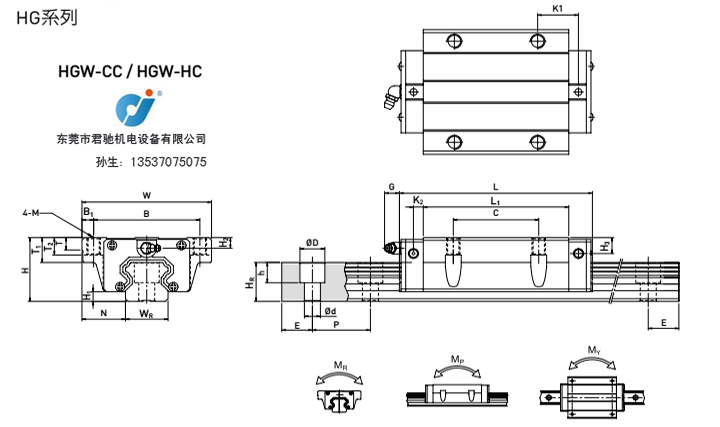 RG系列:CNC加工機、重切屑加工機、CNC磨床、射出成型機、放電加工機、線切割機、大型龍門機床 HG系列線性滑軌,為四列式單圓弧牙型接觸線性滑軌,同時整合最佳化結(jié)構(gòu)設(shè)計之超重負荷精密線性滑軌,相較于其他線性滑軌提升了負荷和剛性能力;具備四方向等負載特色和自動調(diào)心能力,可吸收安裝面的裝配誤差,得到高精度的訴求。高速度,高負荷,高剛性與高精度化概念已成為全世界工業(yè)產(chǎn)品發(fā)展的趨勢,HIWIN四列式超重負荷線性滑軌,即為此理念開發(fā)產(chǎn)品。