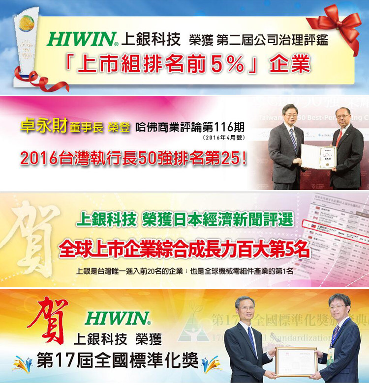 運用四列式圓弧溝槽,配合四列等45度之接觸角度,讓達到理想的亮點接觸構(gòu)造,能承受來自上下和左右方向的負荷,在必要時更可施加預壓以提高剛性 HG系列可分為非互換性和互換性兩種線性滑軌,兩者規(guī)格尺寸相同,主要差一點在于互換型滑塊,滑軌可單出互換使用,較便利,但其組合精度無法達到非互換性型之超高精度,不過由于HIWIN在制造上有良好的尺寸控制及嚴格的品質(zhì)要求,互換線性組合精度目前已達一定的水準,對不需配對安裝線性滑軌的客戶而言,是一項很好的選擇。【貼心的服務】